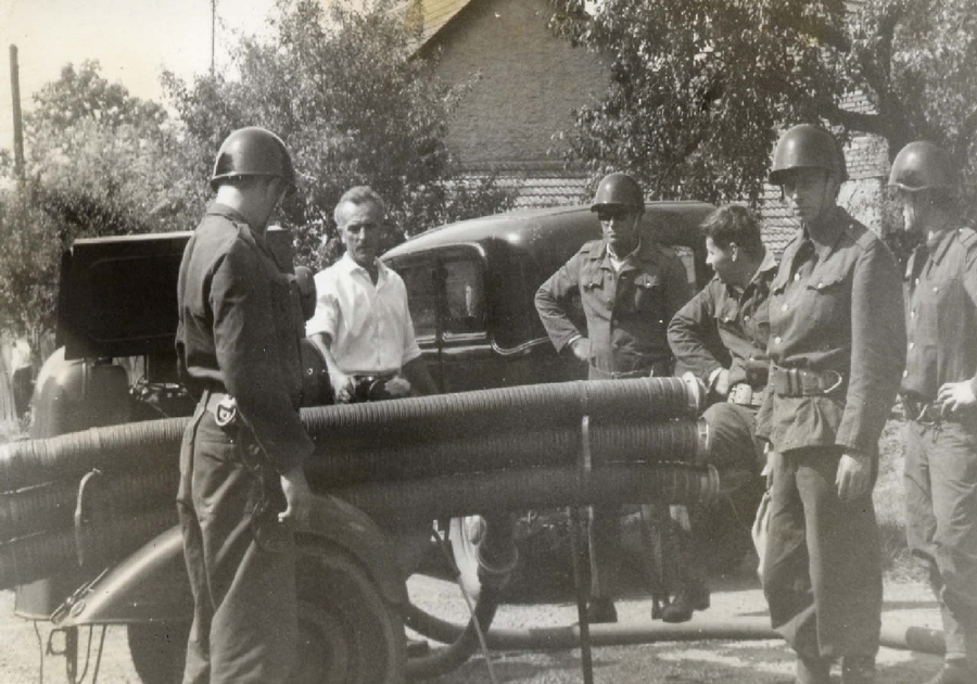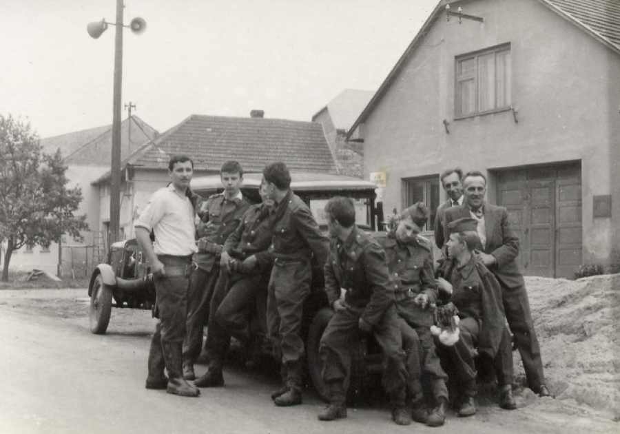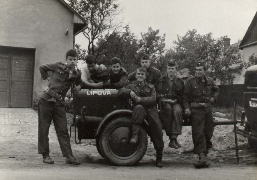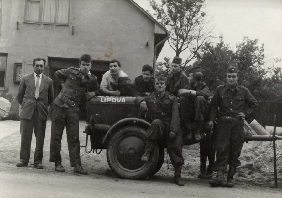 1965 - Hasiči před zbrojnicí 11965 - Hasiči před zbrojnicí 21965 - Hasiči před zbrojnicí 31965_jména k foto Hasiči před zbrojnicí 1