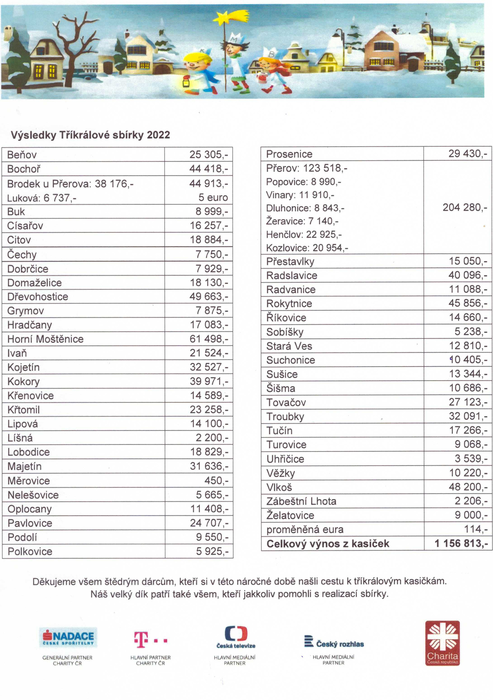 Úvod > Aktuality > Výsledky Tříkrálové sbírky 2022